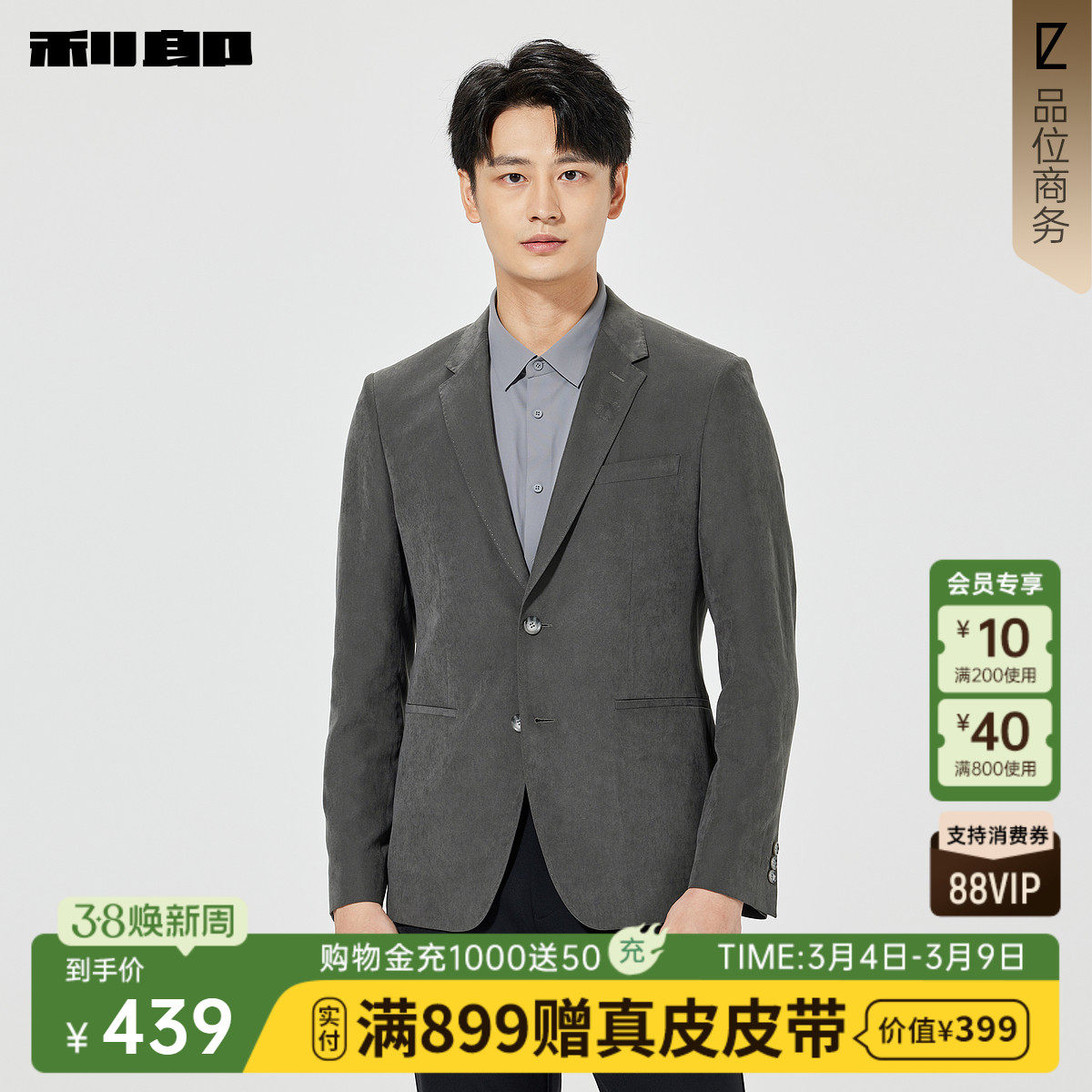 利郎官方 休闲西服男士商务修身单西男装2026春季新款西装外套男