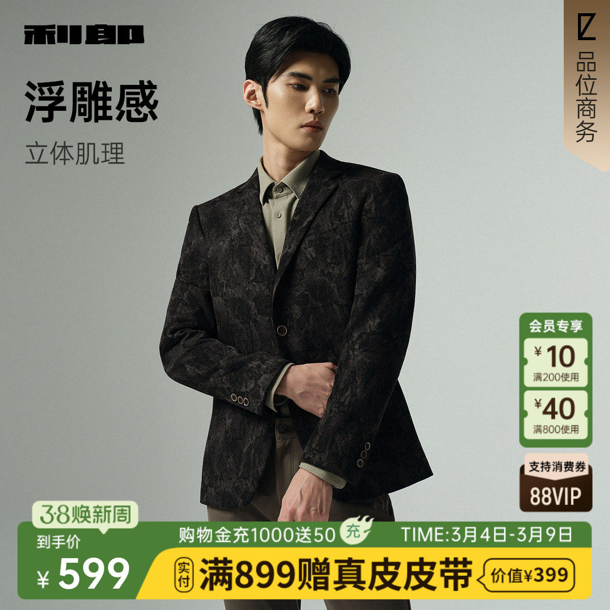 【肌理单西】利郎官方休闲西服男2026春秋款新款商务男装西装外套