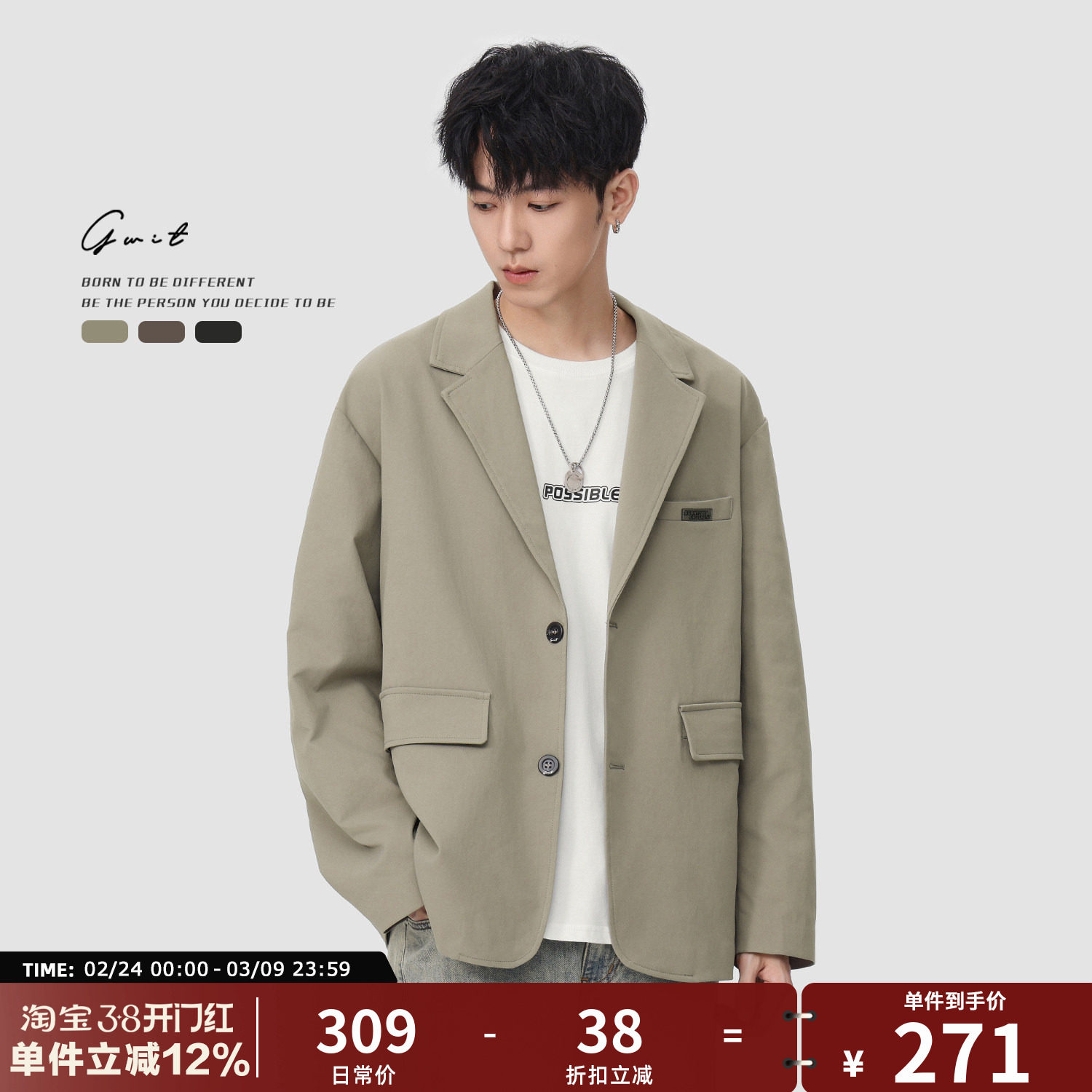 GWIT 高级感复古廓形垂感抗皱痞帅上衣春秋西装外套休闲小西服男