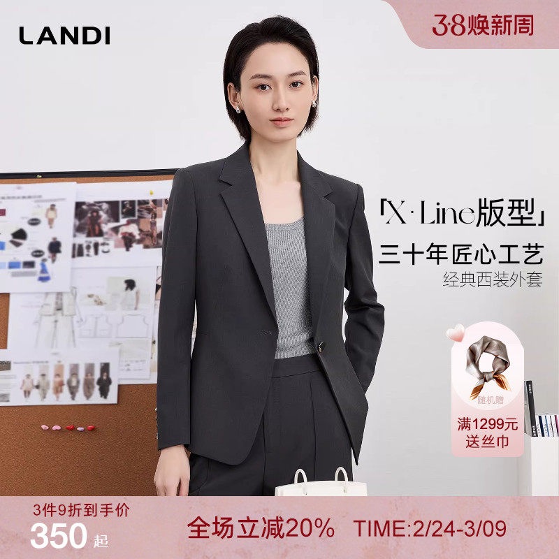 「X·Line」经典版型LANDI深灰通勤收腰西装外套女套装2026春新品