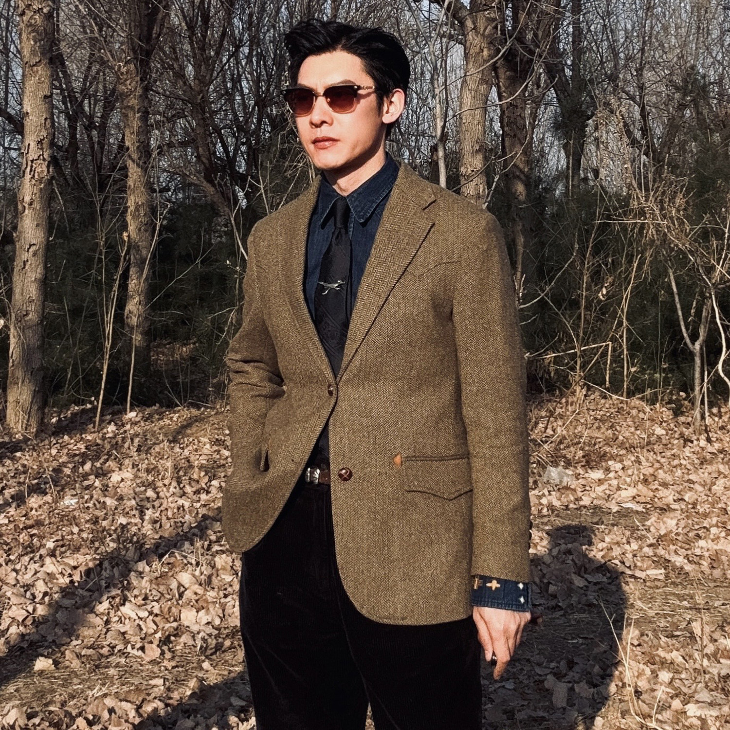 美式复古人字纹粗花呢羊毛西装外套绅装男士羊毛呢西服咔叽R*L