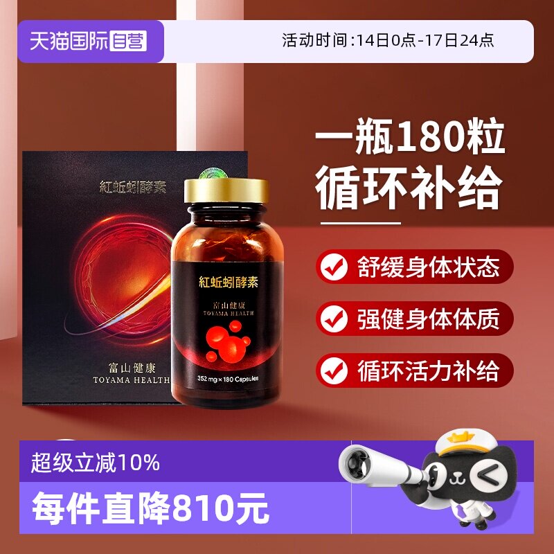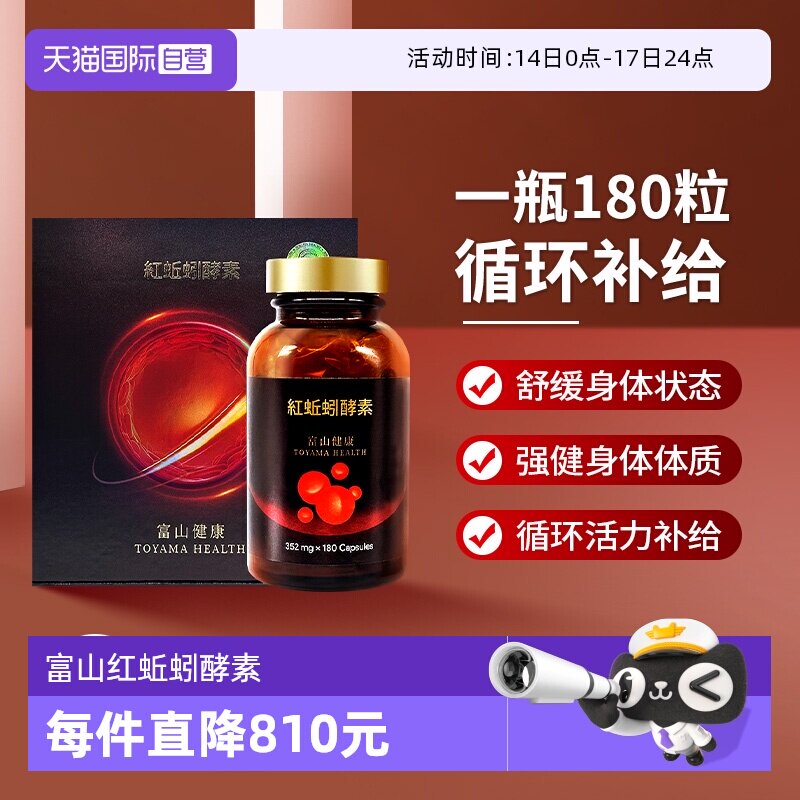 日本富山健康红蚯蚓复合酵素胶囊溶栓天然高活性可溶解180粒正品