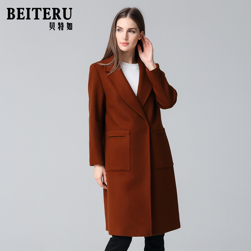 贝特如妈妈冬装外套女新款毛呢大衣獭兔毛领洋气中长款专柜正品YB