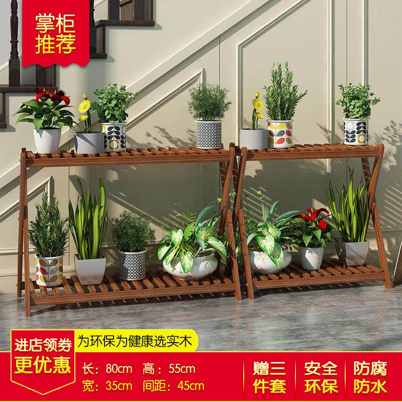 两层实木防腐落地式花架子阳台木质置物架户外台阶梯式多层花盆架