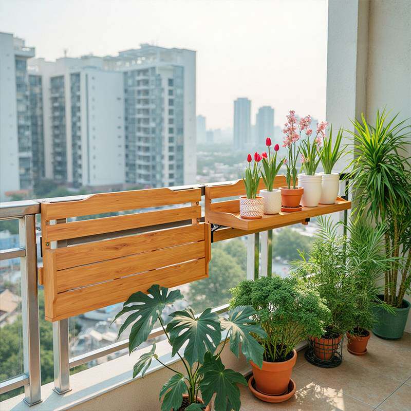 阳台扩展架防腐木质花架子悬挂式可折叠多肉花盆托架栏杆置物架子