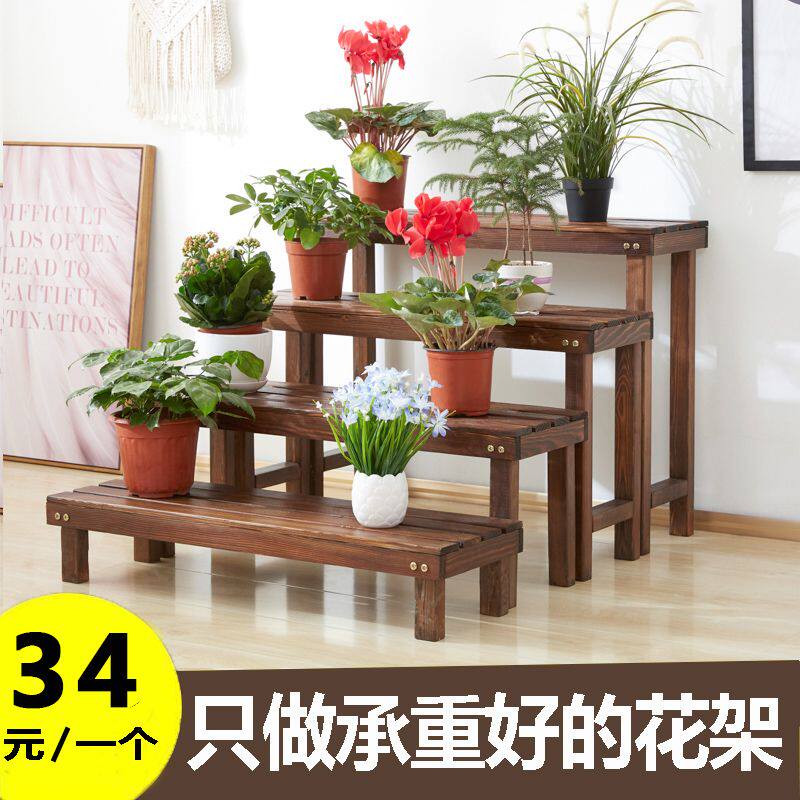 室内外实木质花架子阳台客厅碳化防腐绿萝多肉植物置物架落地多层