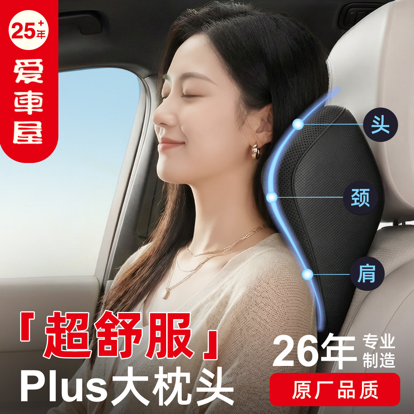 【下单立减50】汽车头枕车用靠枕车内驾驶座椅记忆棉护腰靠车载QC