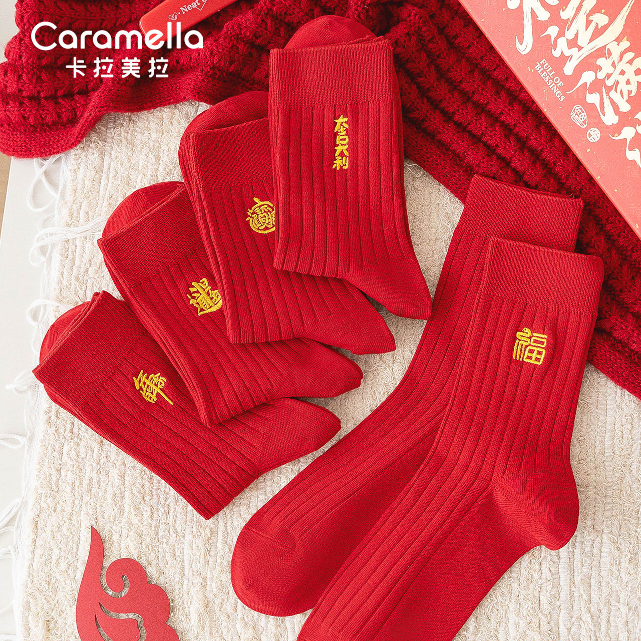 袜子男士秋冬季男袜红袜新年长袜保暖棉袜防臭青少年男生款中筒袜