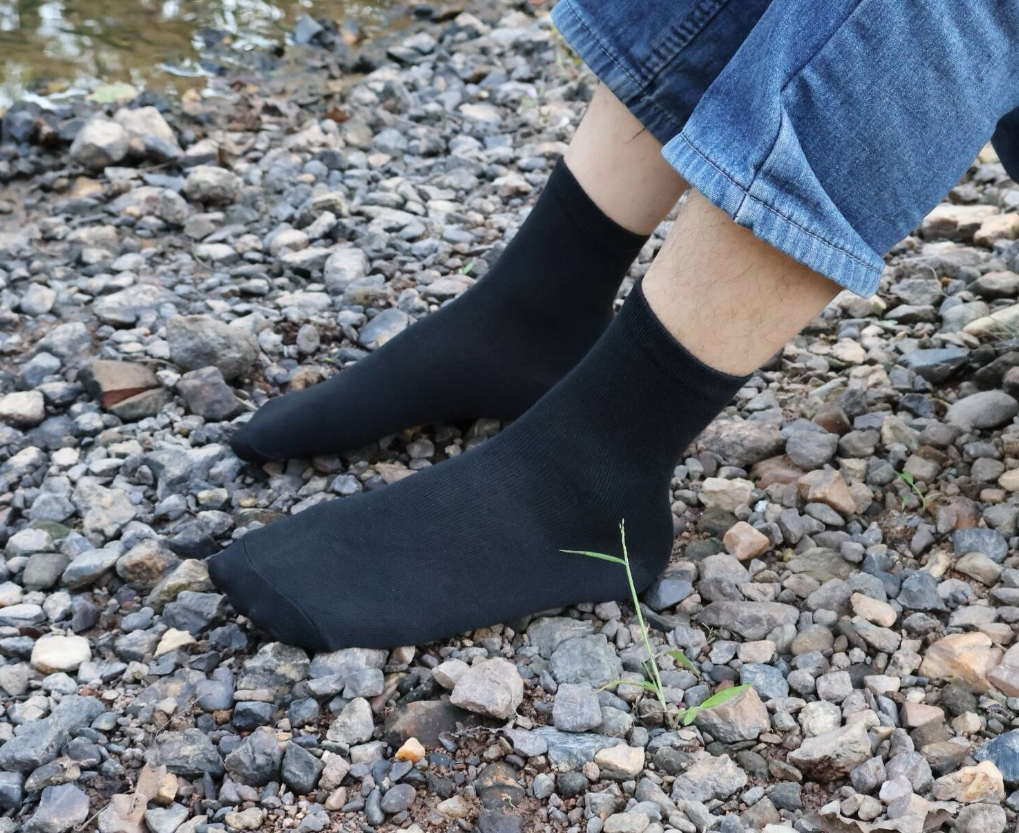 10双黑色男士袜子中筒袜100%棉质春秋双针防臭诸暨秋冬季男袜长袜