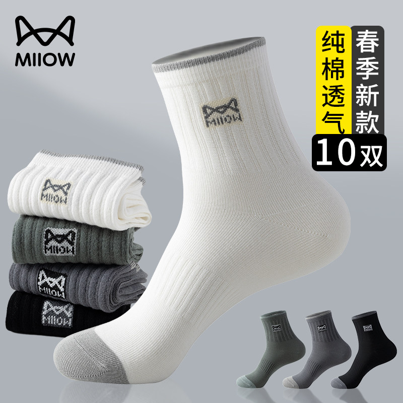 猫人袜子男款秋冬季男袜纯棉防臭青少年运动100%全棉袜男士中筒袜