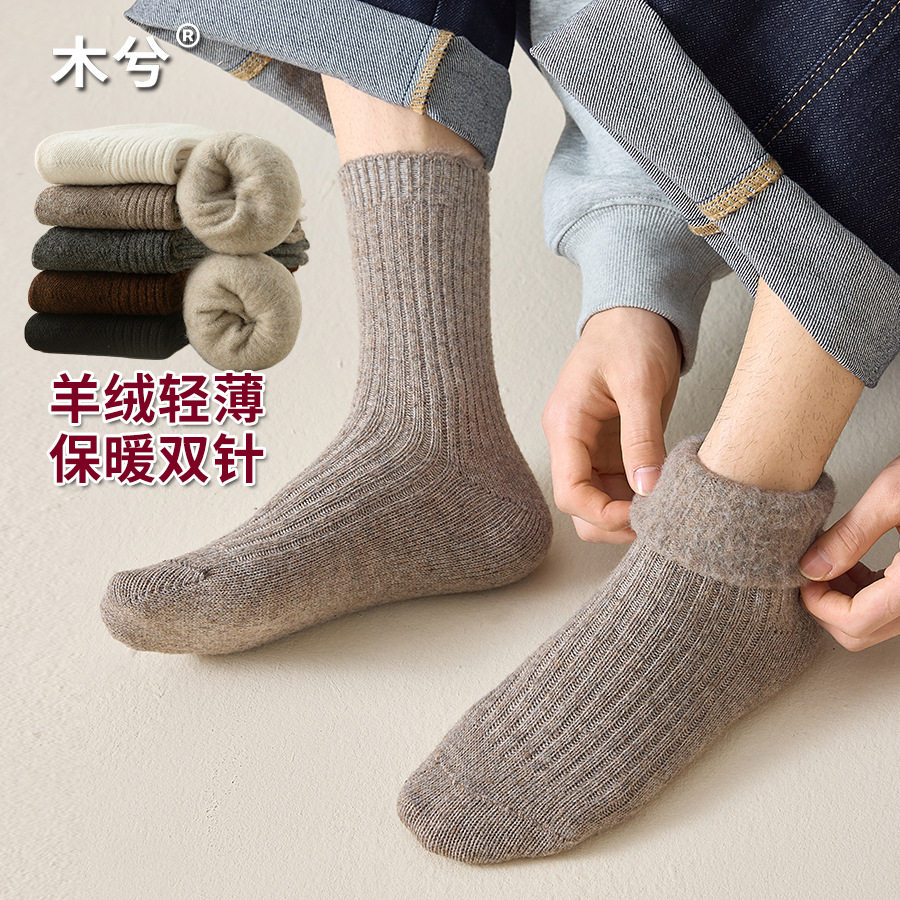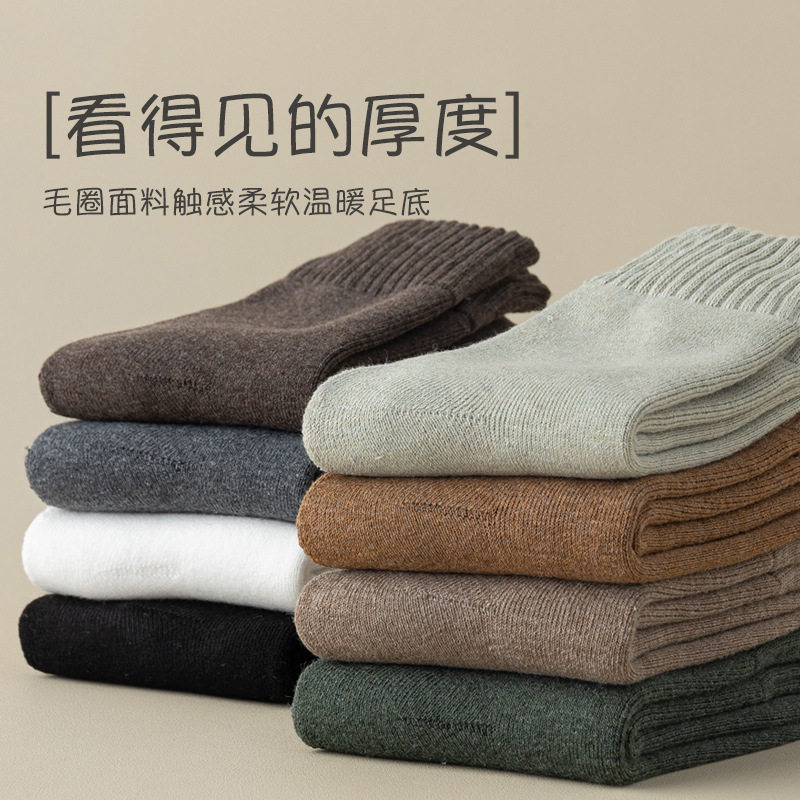 5%羊毛袜男士秋冬季新款加厚加绒毛巾袜冬季男袜保暖高筒日系中筒