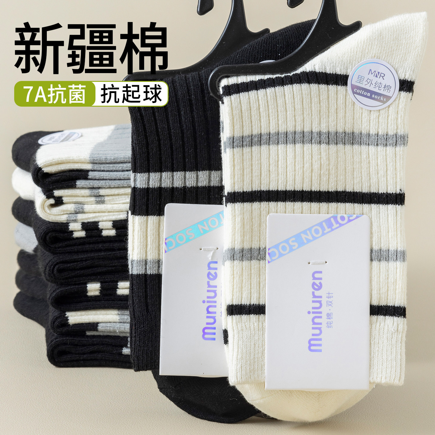 10双袜子男中筒双针纯棉黑白色秋冬季男袜女士长袜休闲防臭运动袜