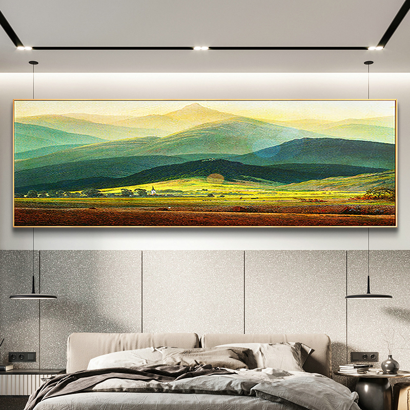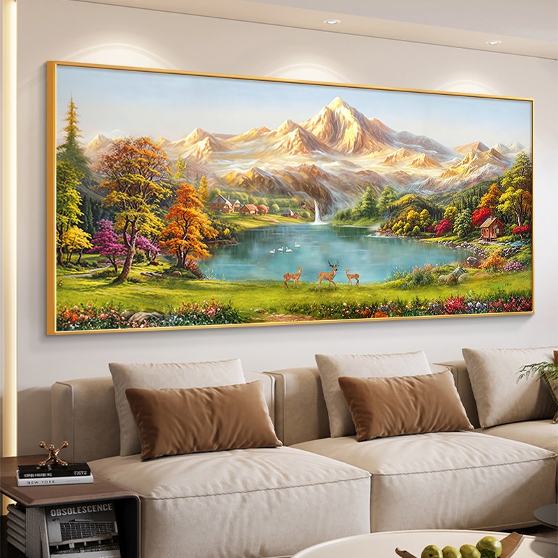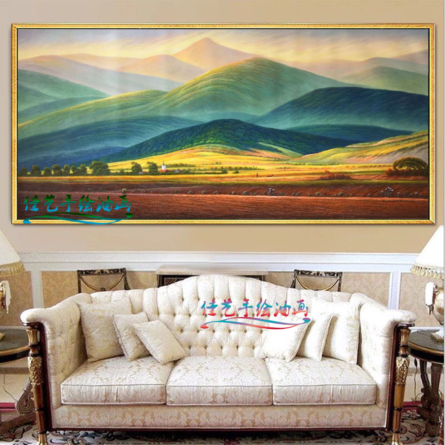 巨人山背有靠山客厅装饰画山水画风景油画横版壁画沙发背景墙挂画