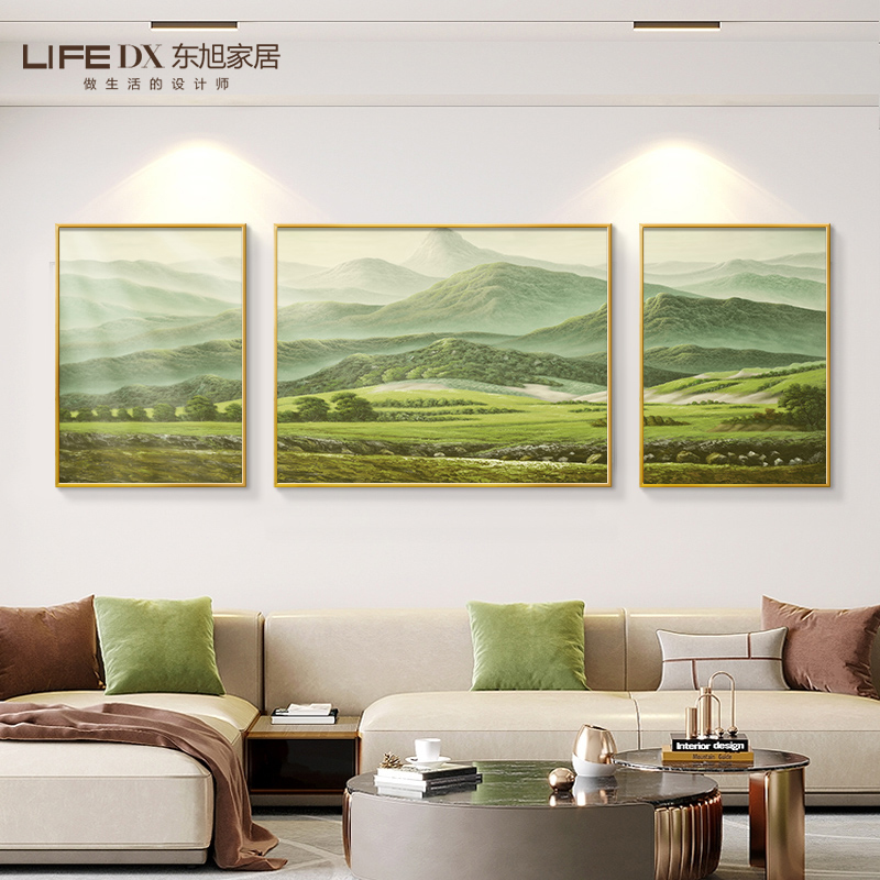 巨人山美式客厅装饰画沙发背景墙壁画三联画山水玄关挂画餐厅油画
