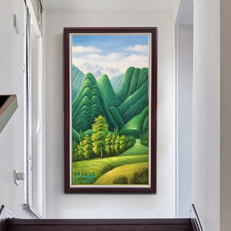 新款美式玄关装饰画欧式客厅山水风景油画竖版过道招财新款巨人山