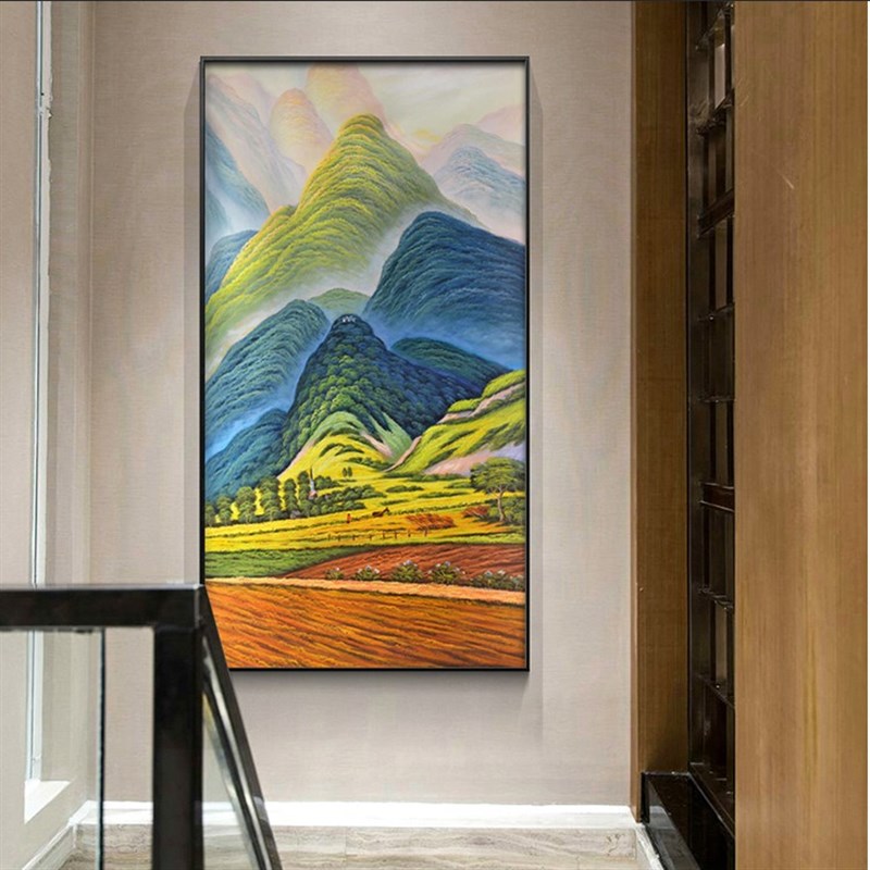 定做挂纯手绘巨人山竖景版装邮包饰画元风宝油画玄关走廊山餐厅画