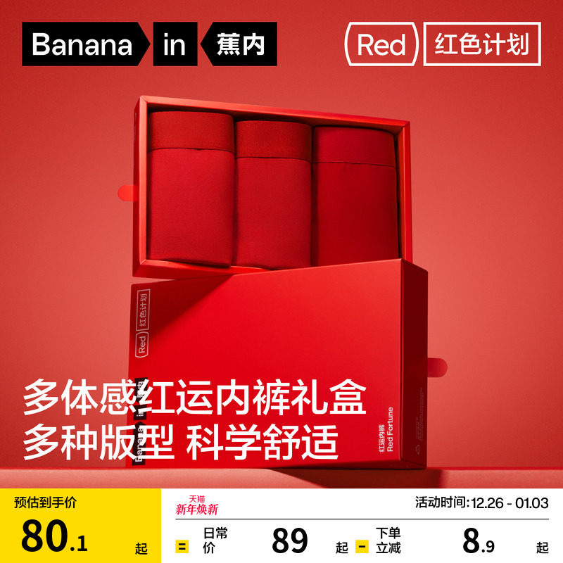 礼盒|蕉内红色计划5系莫代尔纯棉男士内裤女士袜子短裤本命年结婚