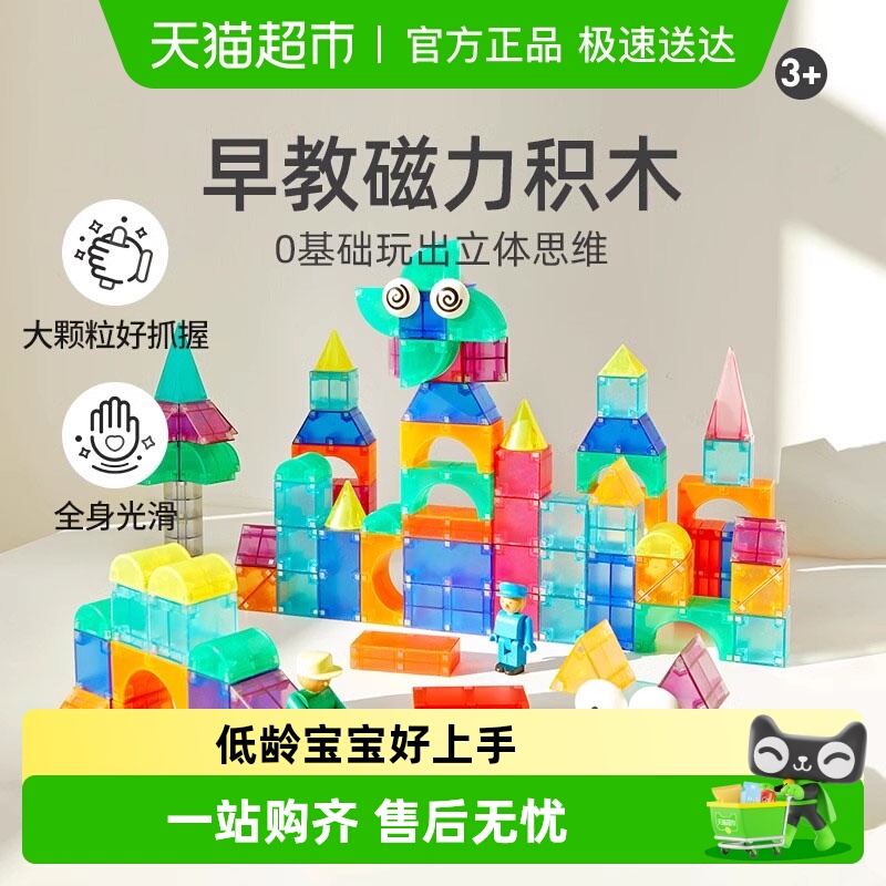 小伶玩具儿童磁力积木方块女男孩拼图儿童益智拼装磁铁吸积木玩具