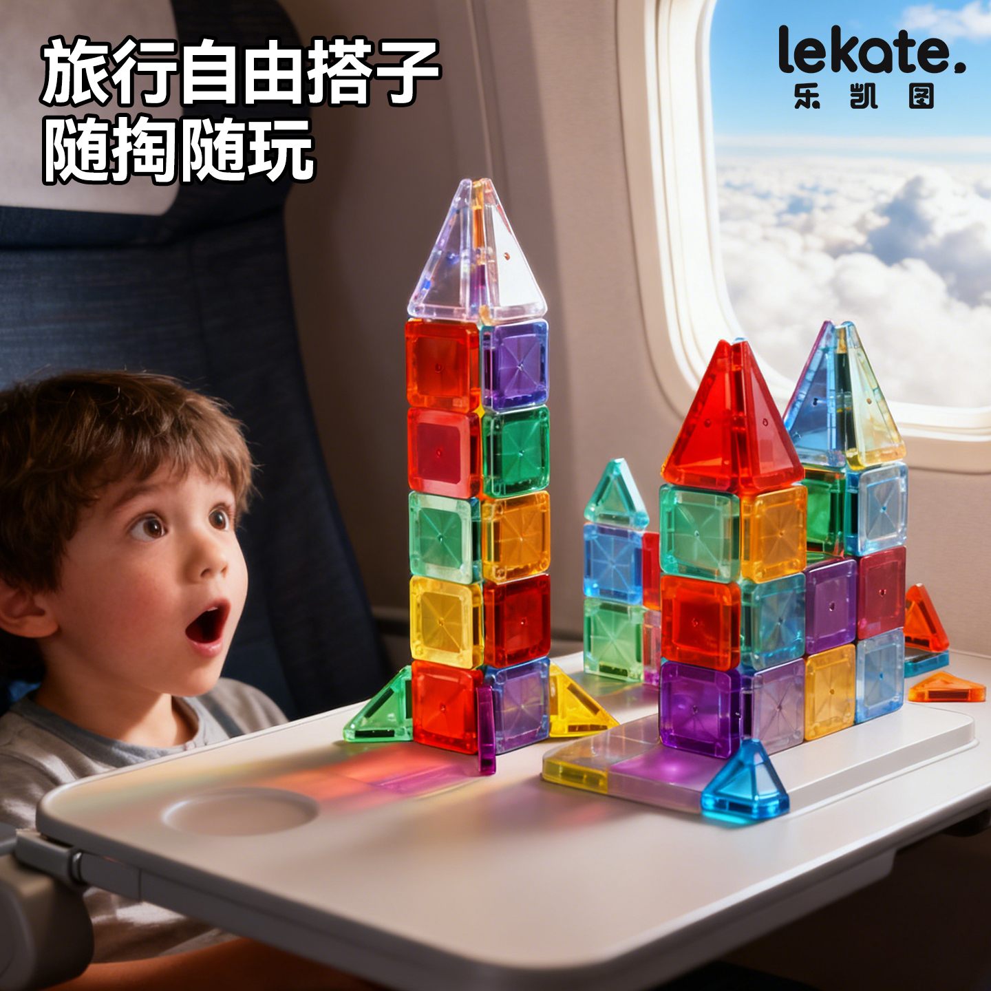 Luka卢卡磁力积木正方形磁力片大自然彩窗管道磁吸小车三角补充装