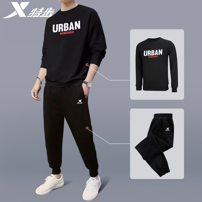 特步运动套装男秋季新款卫衣宽松休闲装跑步服男士长袖长裤两件套