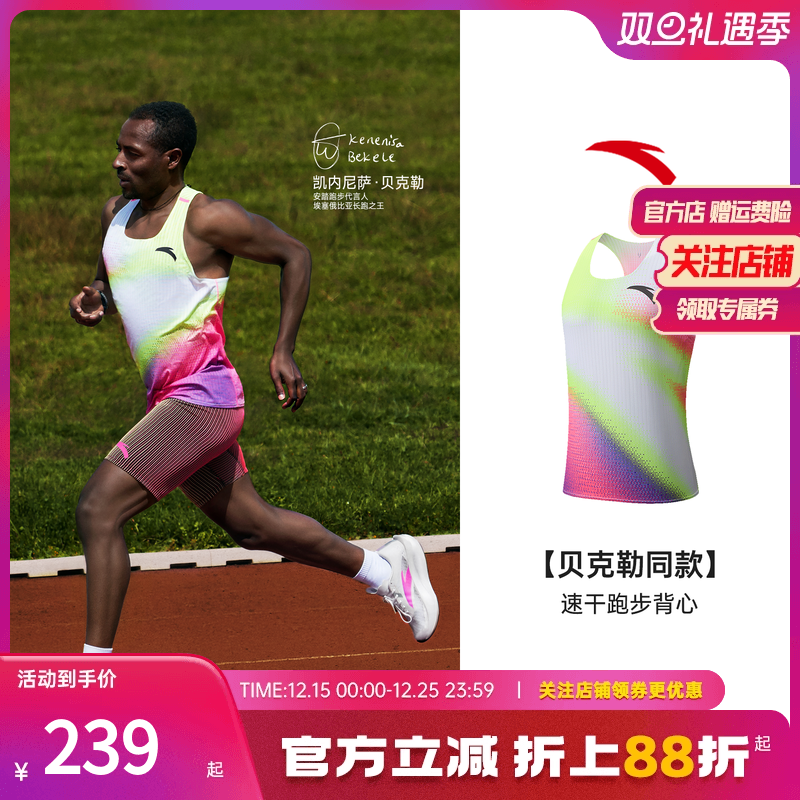 安踏男子专业马拉松跑步服男速干运动背心透气无袖t恤152535101R