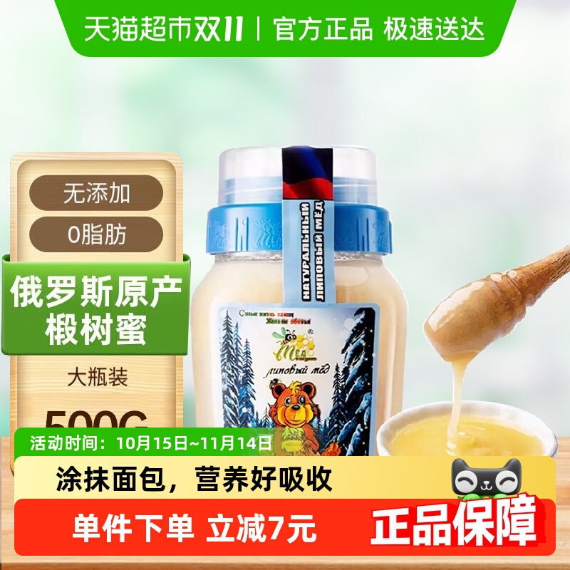 俄罗斯蜂蜜原装进口椴树蜜百花蜜结晶天然雪蜜冬熊牌营养纯正食品