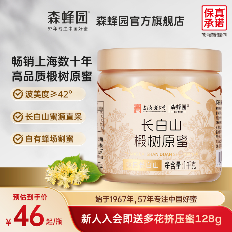 森蜂园蜂蜜官方旗舰店长白山椴树原蜜1000g家庭大瓶装椴树雪蜜