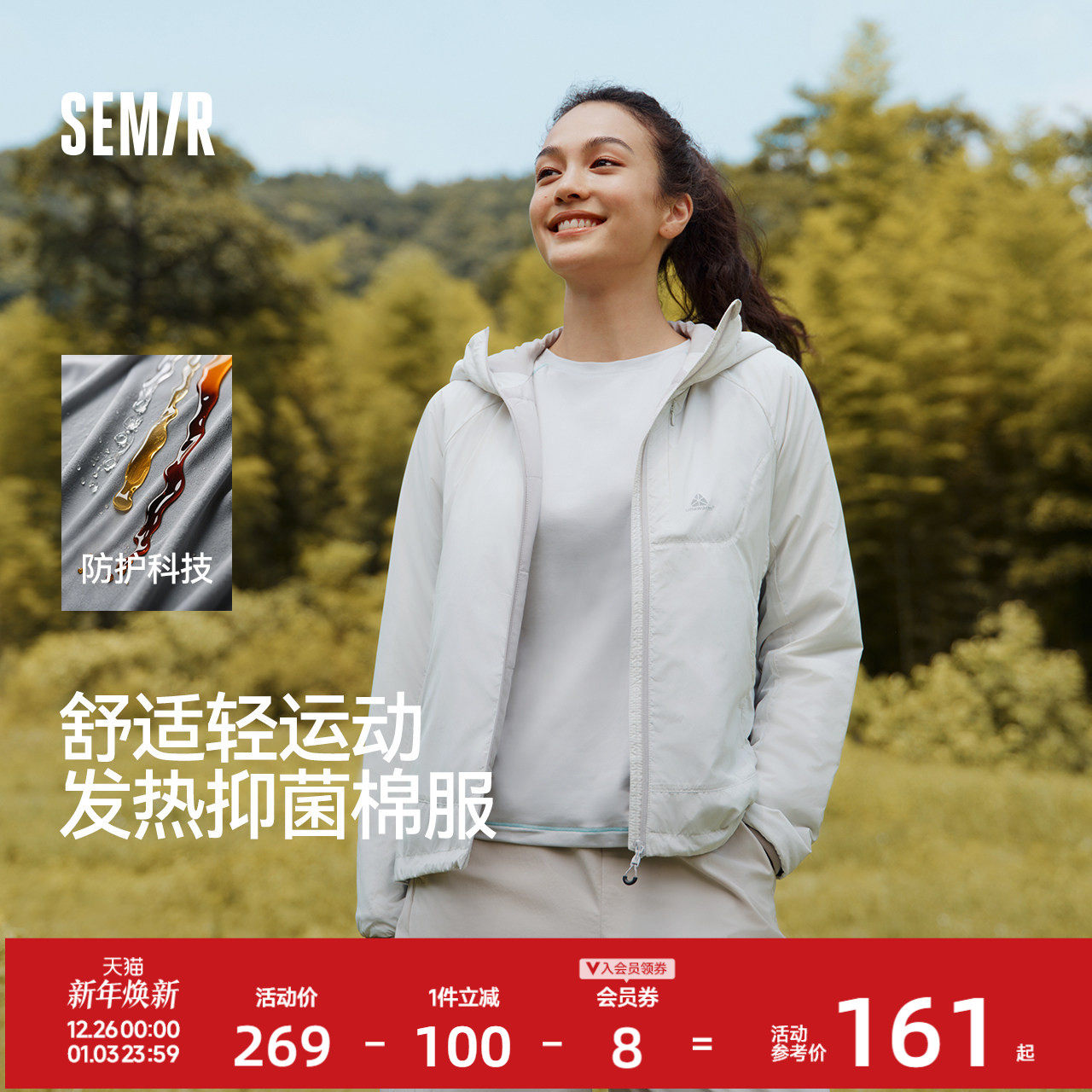 森马棉服女三防户外插肩袖修身连帽2025新款冬季发热抑菌轻薄内搭