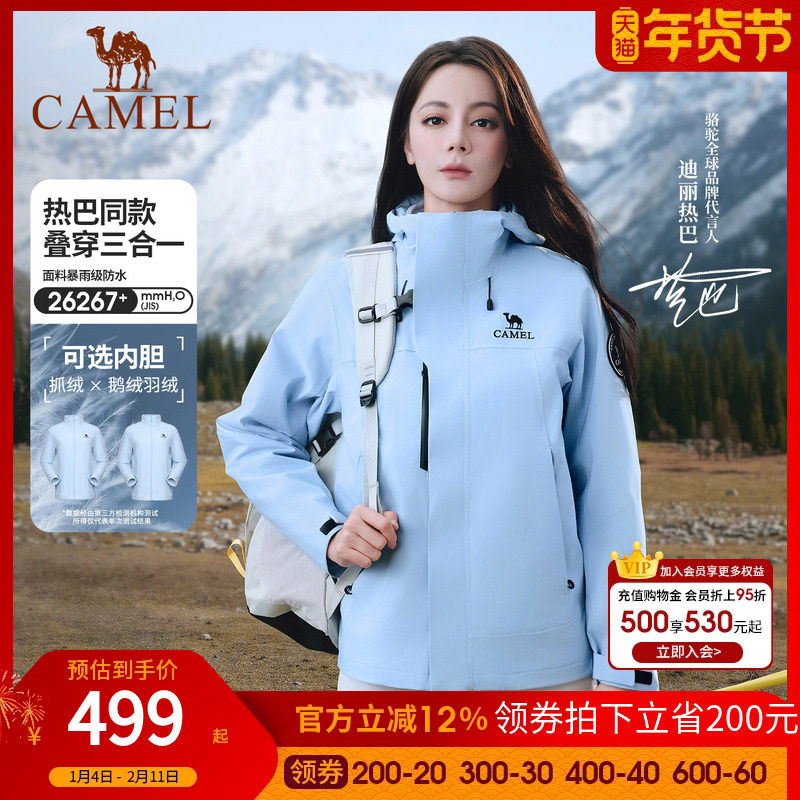 骆驼雨舞者冲锋衣女款三合一户外防水保暖连帽徒步登山服秋冬加厚