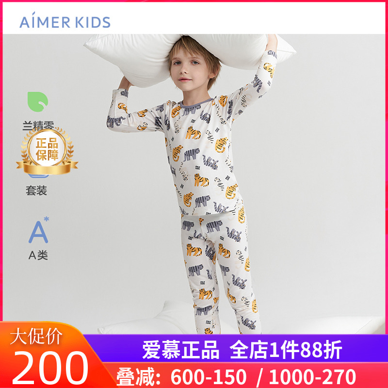 爱慕儿童正品男童女童秋冬薄款秋衣裤 莫木代尔打底保暖内衣套装