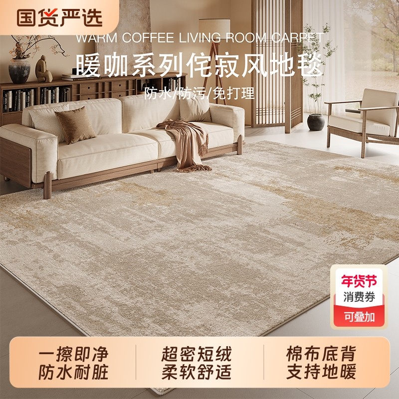 原木风客厅地毯卧室沙发茶几毯美拉德毯可擦免洗2026新款高级防水