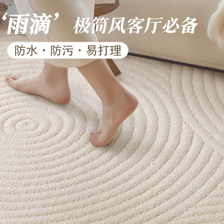 真防水防污高级感客厅地毯米色螺旋纹3D浮雕轻奢卧室床尾地毯加厚