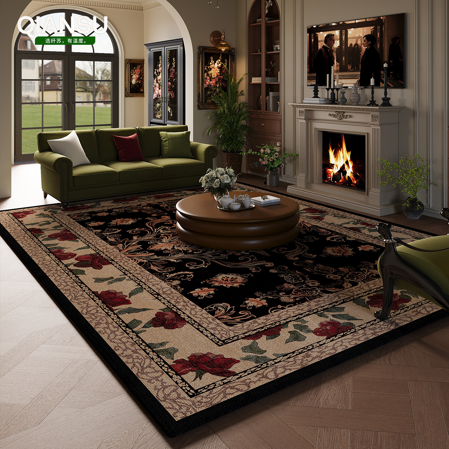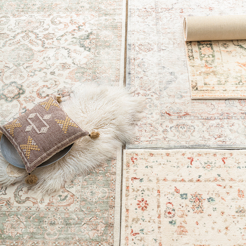 客厅地毯新款美式高级沙发地垫复古免洗茶几垫子加厚防水美拉德大