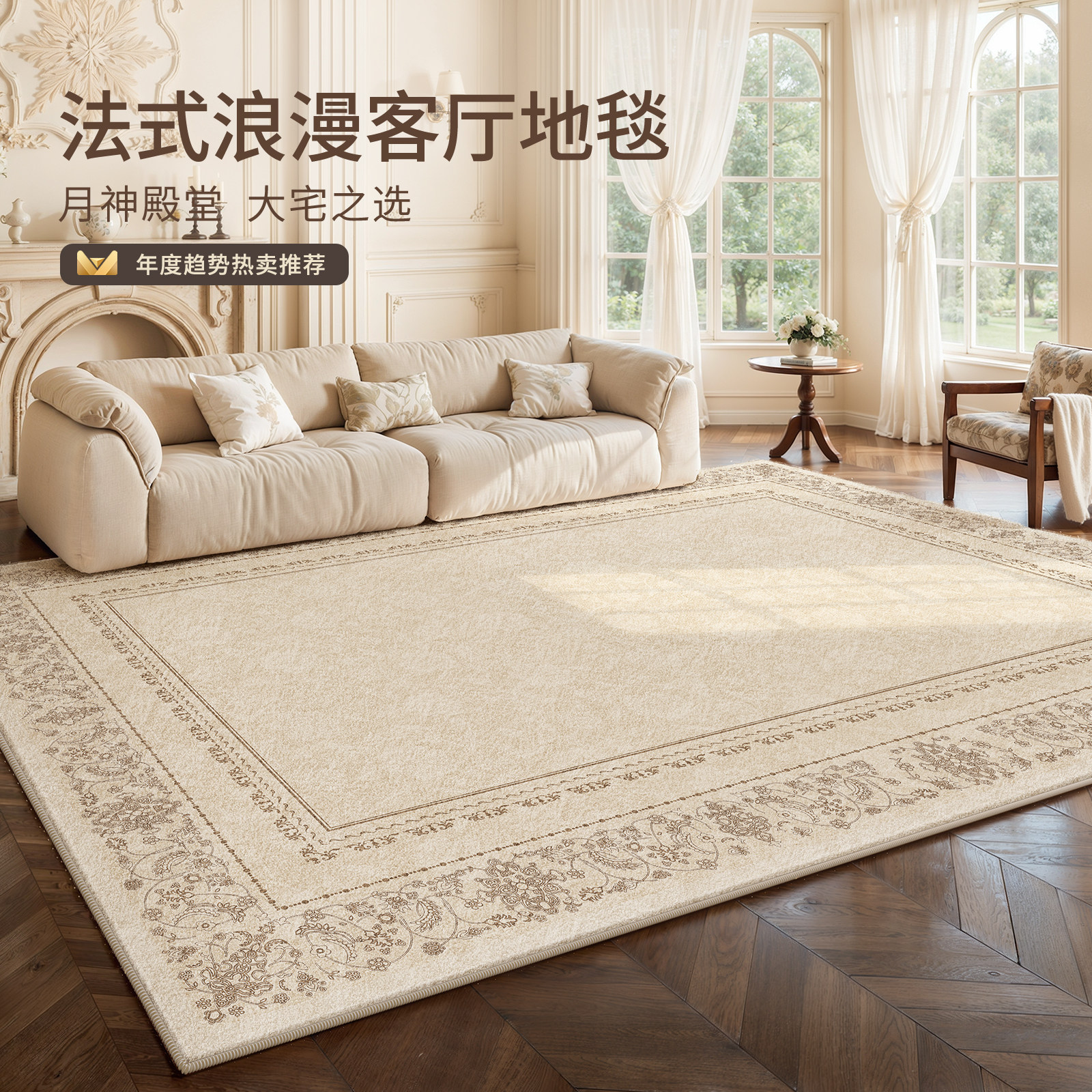 客厅地毯新款复古地垫家用高级沙发法式免洗茶几垫子加厚防水可擦