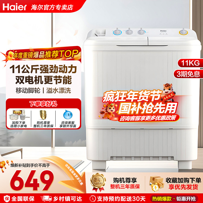 海尔半自动洗衣机11/12/13公斤双缸双桶筒大容量家用老式洗衣机