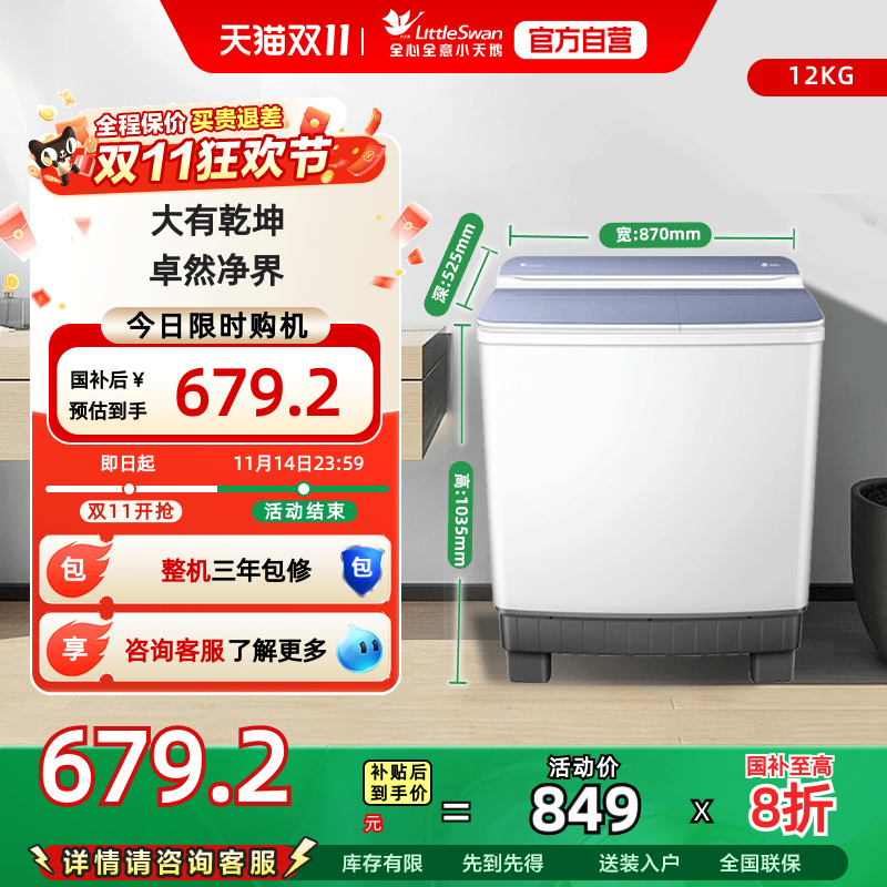 Littleswan/小天鹅 TP12S15612KG公斤双筒双缸双桶半自动洗衣机