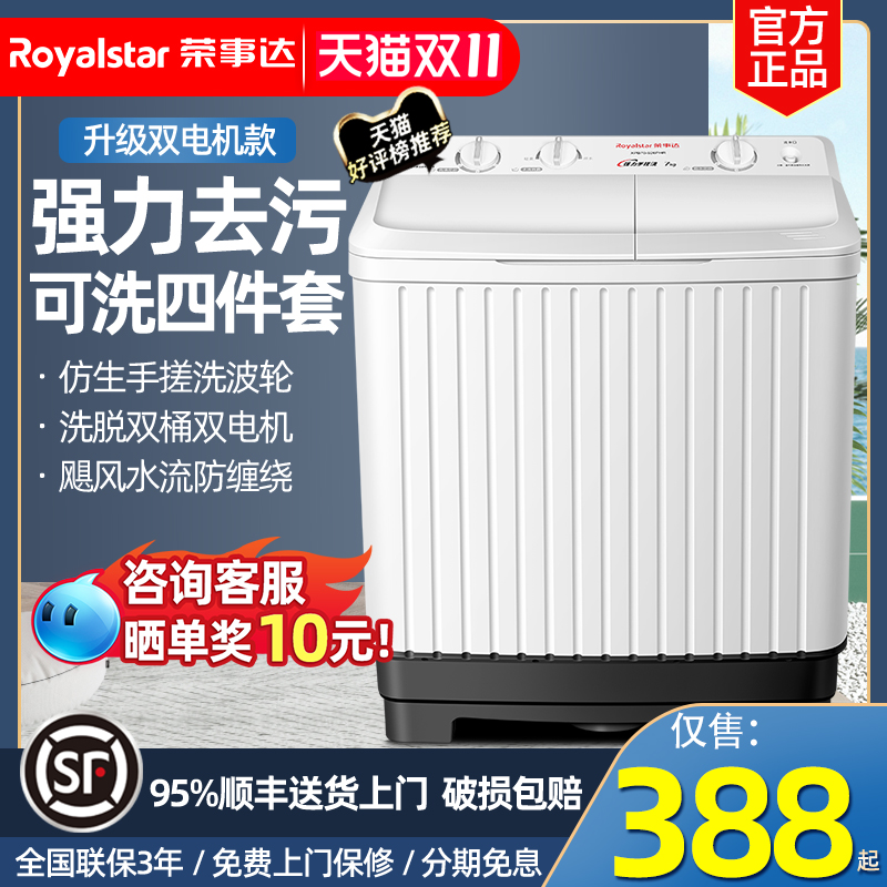 荣事达半自动洗衣机7kg家用大容量双桶宿舍双缸波轮洗脱老洗衣机