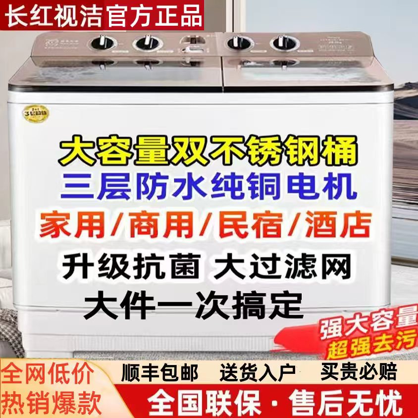 长红视洁半自动洗衣机商用大型容量50/100公斤宾馆家用老式双缸桶
