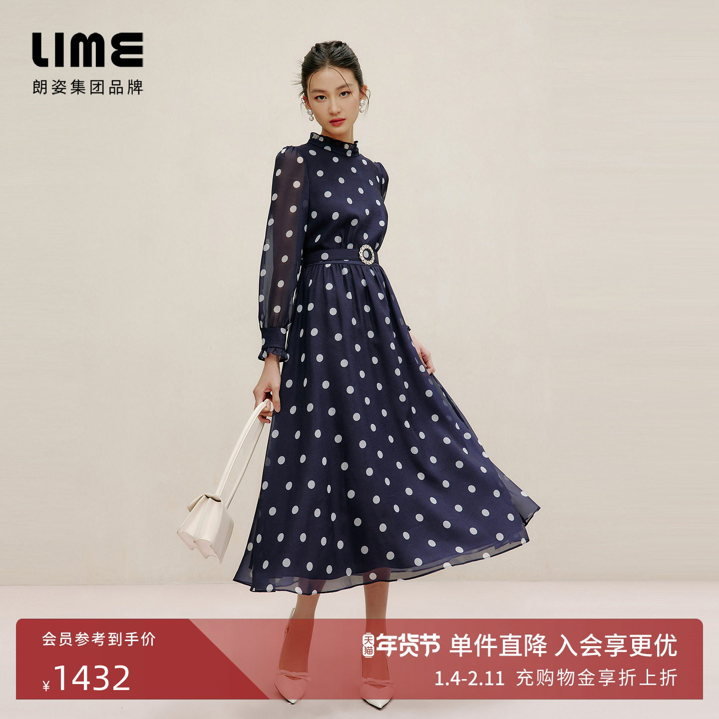 朗姿集团LIME莱茵钉珠圆领小香风收腰高级感法式连衣裙25冬新款