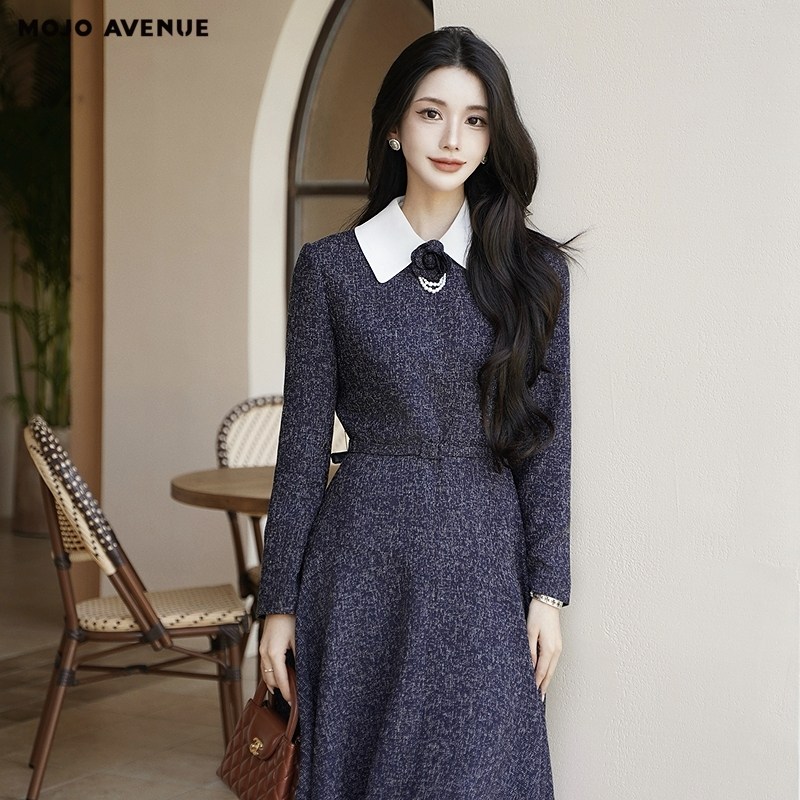 朗姿集团LIME莱茵翻领复古收腰小香风连衣裙高级感长裙25秋冬新款