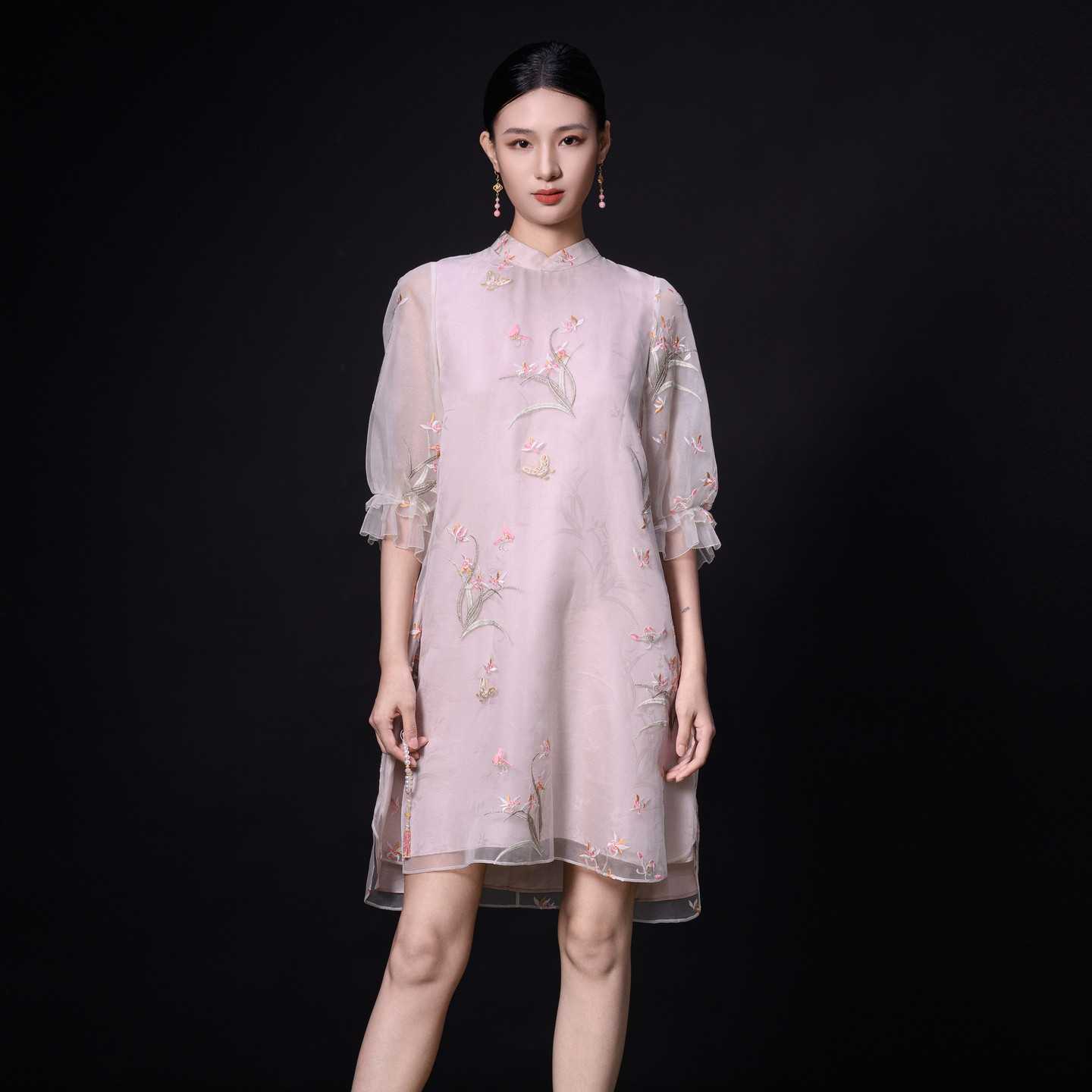 - 盘扣旗袍连衣裙