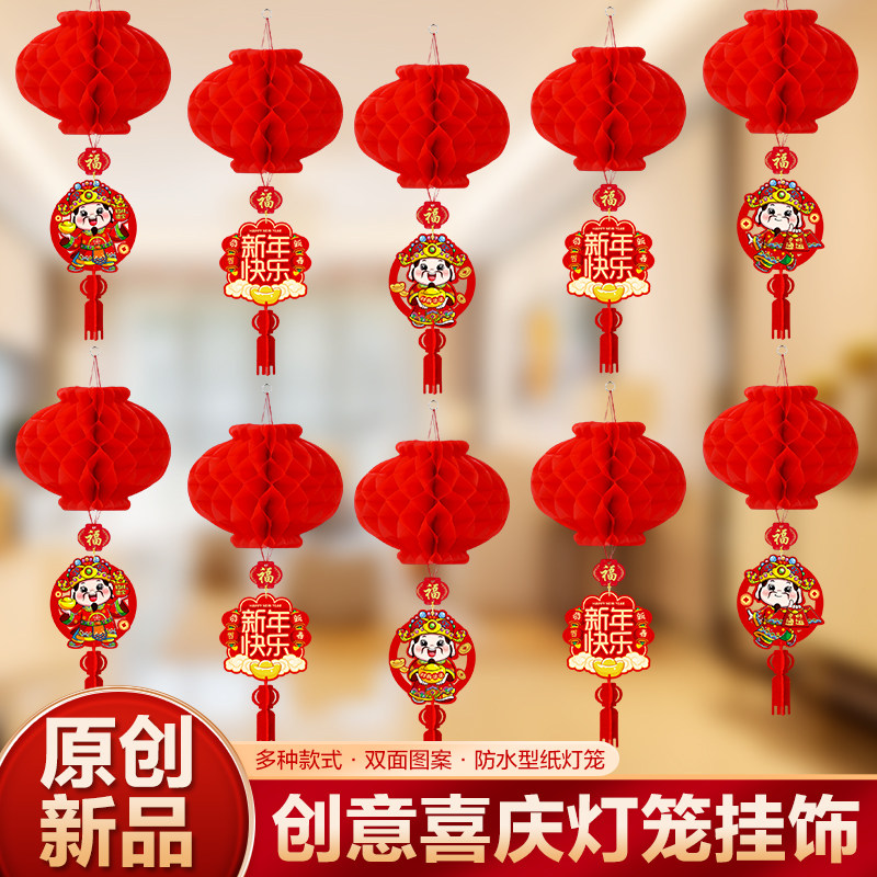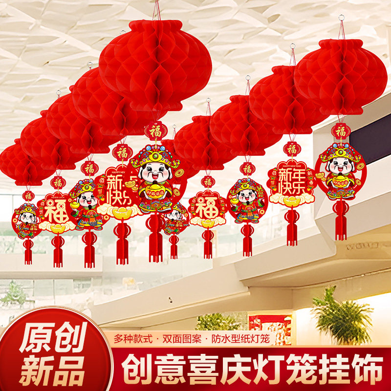 新年灯笼装饰挂饰春节蜂窝大红灯笼吊饰商场活动氛围场景布置用品