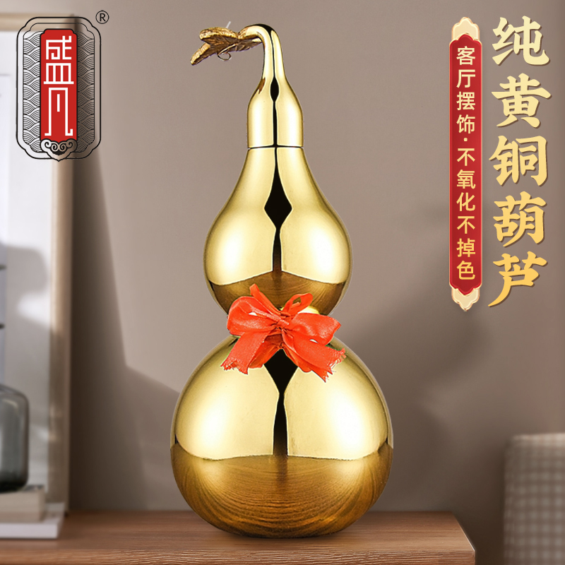 盛凡铜葫芦摆件开口开盖空心八卦黄铜葫芦招财客厅玄关卧室装饰品