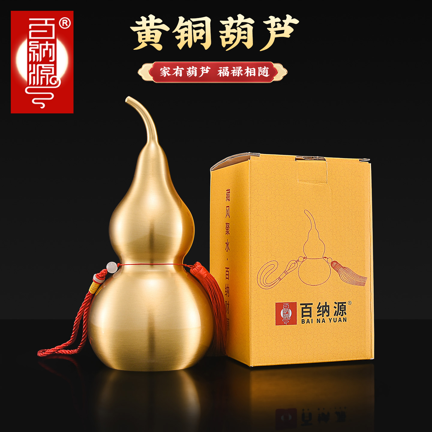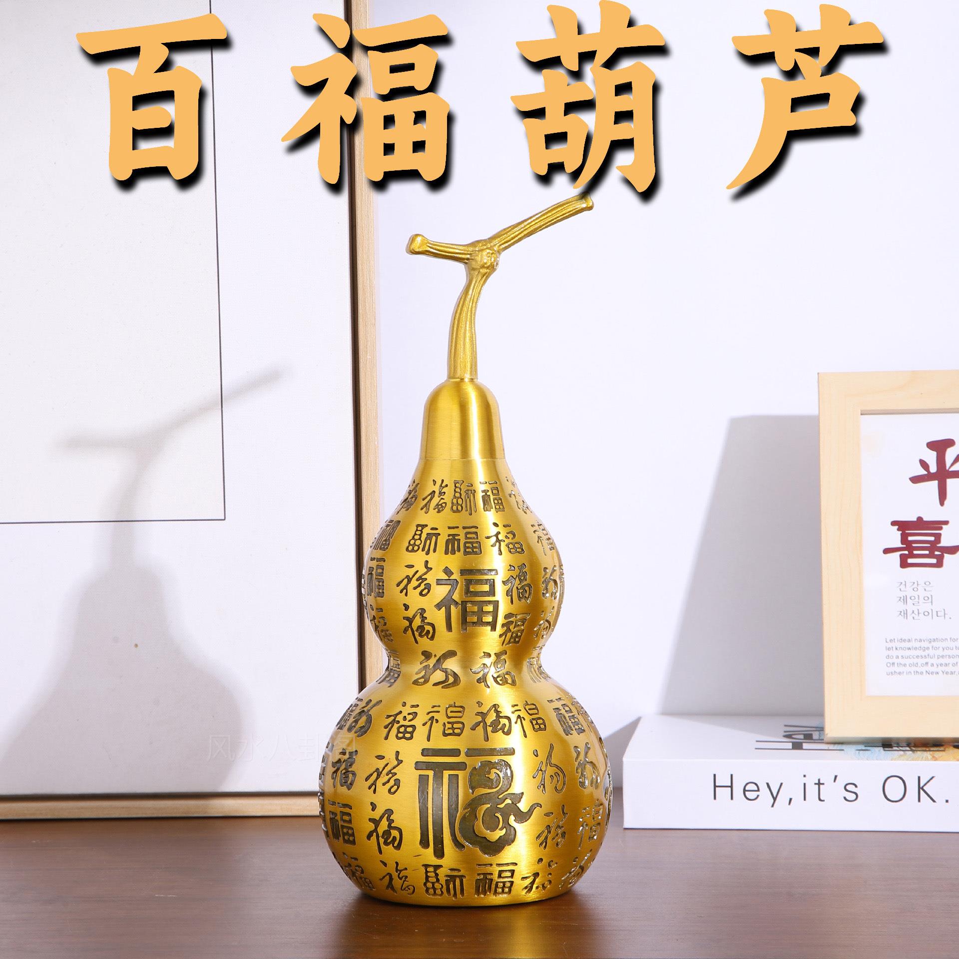 纯黄铜百福葫芦招财镇宅开口空心大号客厅入户乔迁玄关装饰品礼物