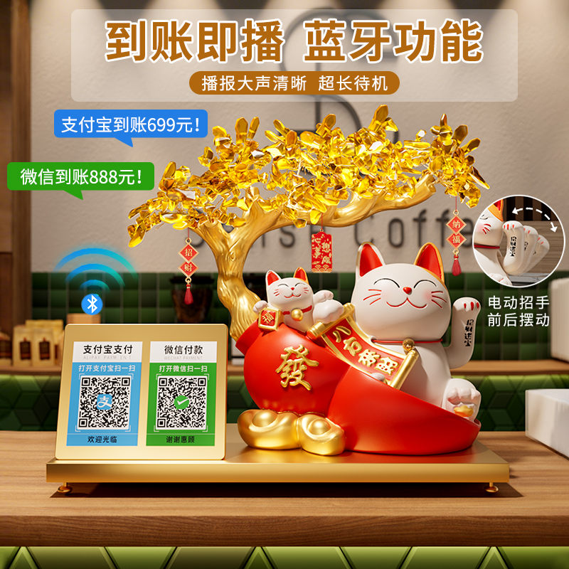 葫芦招财猫摆件自动招手2025新款前台二维码收钱报音器开业礼物