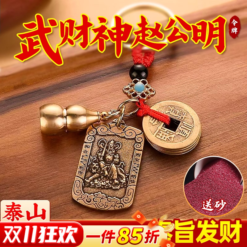 黄铜赵公明五帝葫芦招财令钥匙扣挂件五路武财神爷摆件家用手机贴