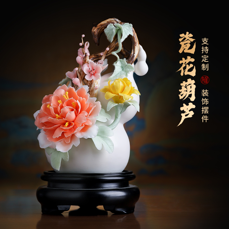 葫芦招财摆件陶瓷非遗手工花客厅家居办公室酒柜装饰乔迁礼品送礼