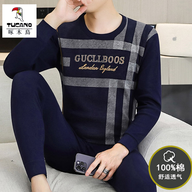 啄木鸟男士秋衣秋裤薄款纯棉薄款青年保暖内衣套装加绒加厚棉毛衫