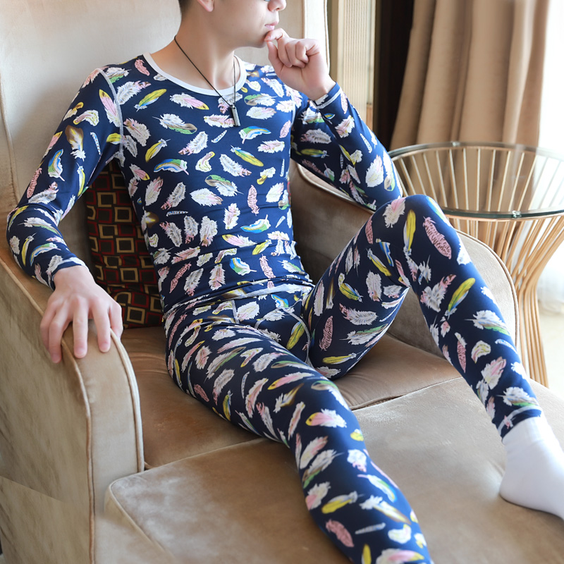 华友源男士秋衣秋裤秋冬打底纯棉印花透气修身中青年保暖内衣套装