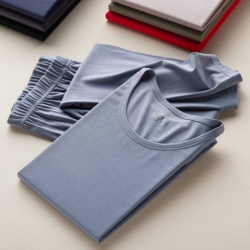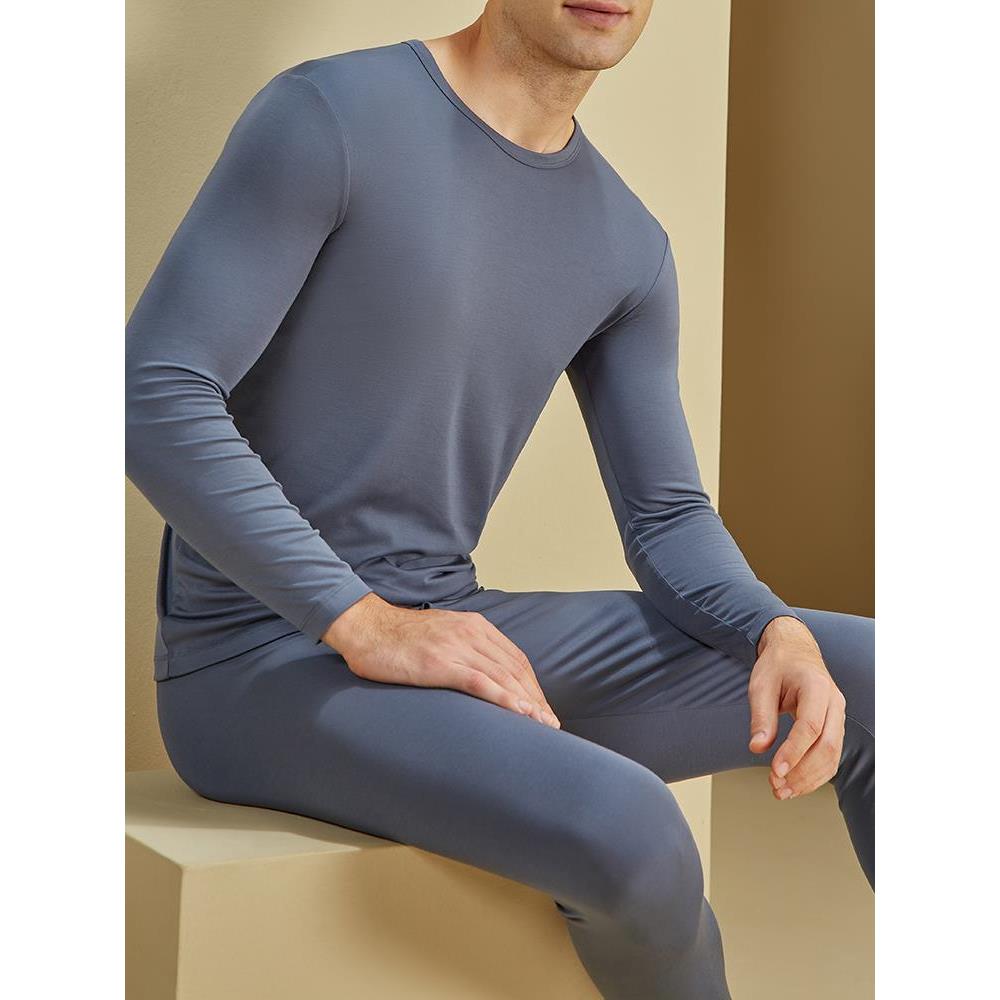 莫代尔秋衣秋裤男士套装薄款圆领打底内穿春秋冬青年保暖内衣一套